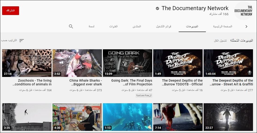 قناة The Documentary Network على اليوتيوب تستقطب عدد بالغ من المشاهدين مع أكثر من 100 ألف مشترك، و+30 مليون مشاهدة.
