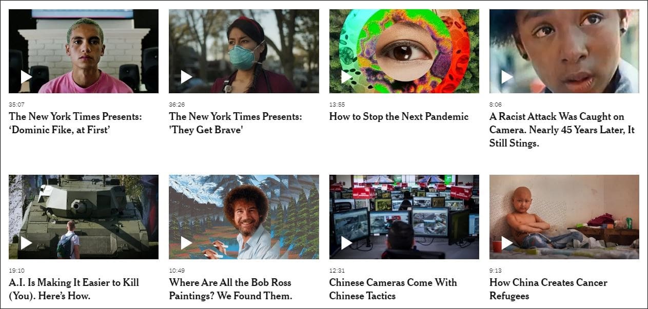يحتوي الموقع على كم هائل من الموضوعات المعالجة في شكل أفلام وثائقية، منها ماهو مخصص للسفر والأكل وغيرها. يمكنك مشاهدة الأفلام الوثائقية التي ترغب فيها، وترك الأخرى التي لا تناسبك.