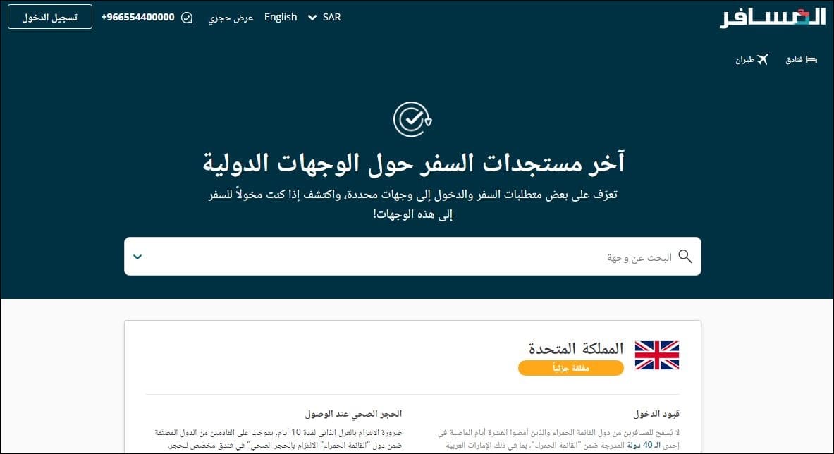 من أجل معرفة الحالة الصحية للبلدان، والأماكن التي يسمح لك بالسفر إليها، تم إطلاق خدمة عربية اسمها “المسافر“. موقع Almosafer عبارة عن أداة مهمة لكل الراغبين في السفر.