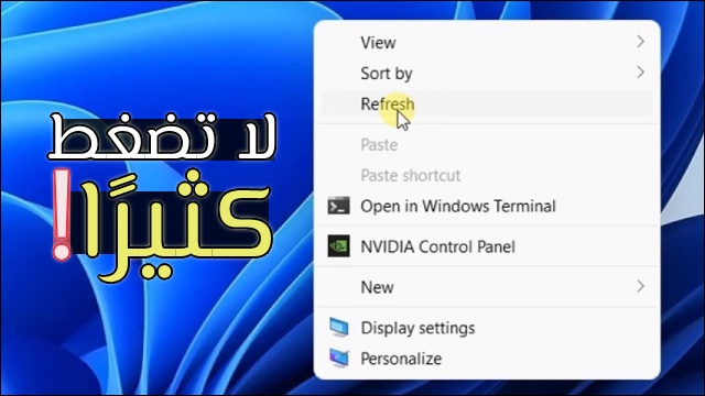 19في الحاسوب، ستتعرض من حين لآخر إلى تشنجات. مع هذا، ستفكر في حل المشكلة عبر التوجه إلى سطح المكتب وبالزر الأيمن للفأرة تضغط على Refresh.
