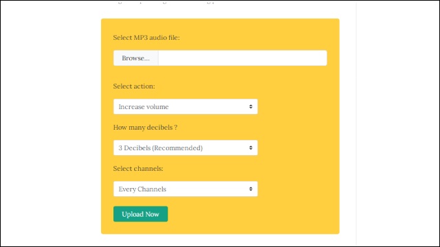 تتوفر الأداة المقصودة على الكثير من الخيارات المتقدمة، وبالكاد يمكنك رفع الملف الصوتي، وتحديد ما إذا كنت تريد تغيير مستوى الصوت صعودًا (Incrase) أو نزولًا (Decrase).