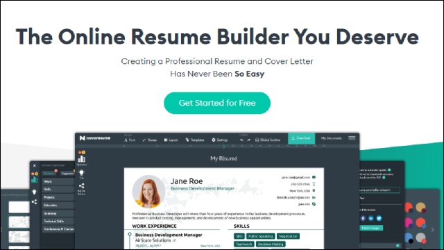ستتوجه الى موقع Novo Resume، مباشرة ستبدأ عبر الضغط على خيار Get Started For Free للتسجيل في الموقع.