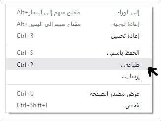 ستقوم باختيار حفظ الصفحة بصيغة PDF والأمر مختلف حسب لغة المتصفح، ثم تقوم بالحفظ واختيار مكان لذلك.